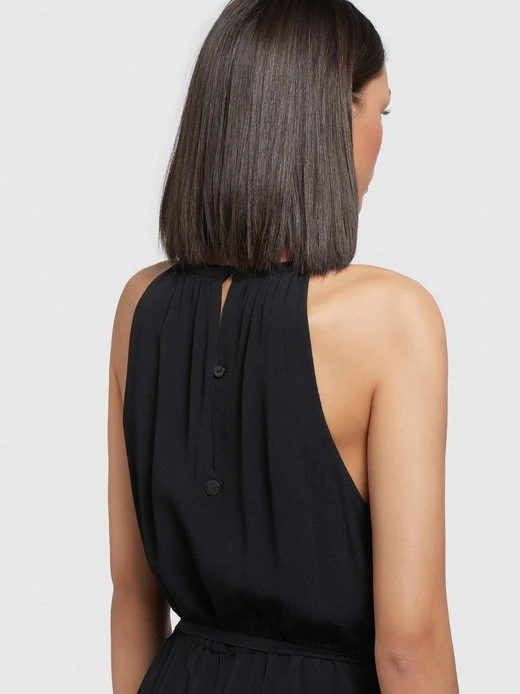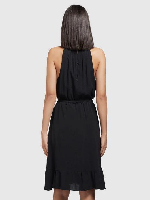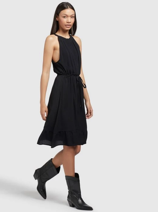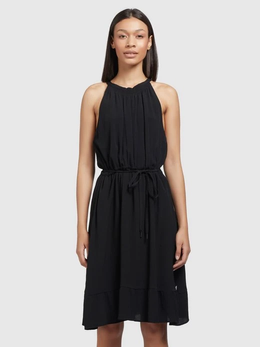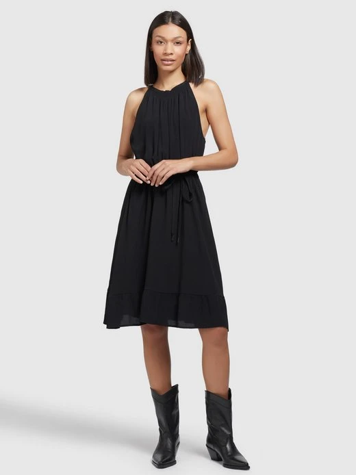 Ein wunderbar femininer Sommerlook ist mit dem kurzen khujo Kleid KELSA3 im Handumdrehen gestylt. Der Collierkragen, ein Schlitz mit Knöpfen am Nacken, eine elastische Taille und ein abnehmbarer schmaler Stoffgürtel runden das Design bei diesem ärmellosen Sommerkleid gelungen ab. Dieses Midikleid in A-Linie ist zudem mit einem integrierten Unterrock ausgestattet, der zuverlässig gegen ungewollte Einblicke schützt.