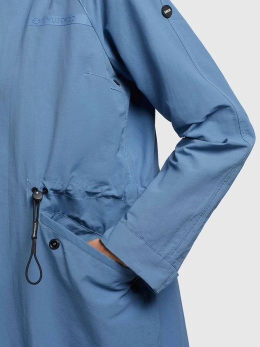 Der leichte khujo Mantel MARNIA2 ist ein sommerlicher Kurzmantel mit einem knielangen Schnitt und zahlreichen Features, wie einem Zwei-Wege-Reißverschluss mit einer wasserabweisenden Beschichtung, Belüftungsösen unter den Armen, einer hoch schließenden Kapuze, verstellbaren Ärmelriegeln, einem Gehschlitz sowie elastischen Kordelzügen an der Kapuze, der Taille und dem Saum. Kleinigkeiten lassen sich bei diesem Parka in den Pattentaschen mit Druckknöpfen sicher verstauen.