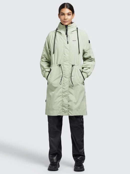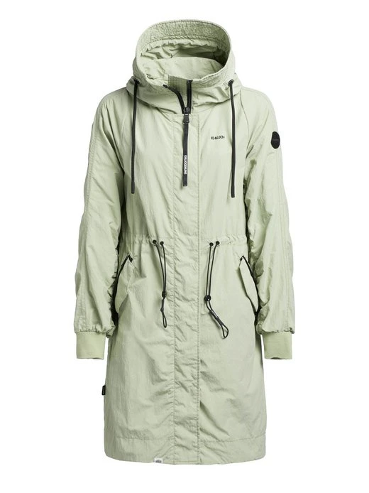 Der lässige Schnitt, das leichte Material mit Crinkle-Effekt und die gesmokten Ärmelinnenseiten geben dem khujo Mantel SILICA einen unverwechselbaren Look. Ein Zwei-Wege-Reißverschluss, das Innenfutter mit einem Einsatz aus Mesh am Oberkörper, Kordelzüge an der Kapuze und Taille, elastische Abschlüsse an den Ärmelenden sowie Reißverschlusstaschen und eine Innentasche runden das Desgin ab.