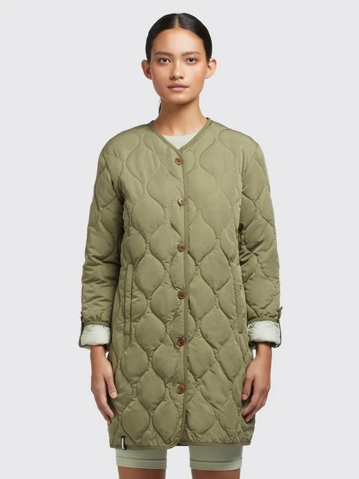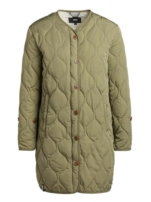 Mit einem leicht gefütterten und kontrastfarbenen Innenfutter bietet der einfarbige khujo Mantel SIRA einen lässigen Auftritt, besonders wenn die Ärmelenden aufgeschlagen und mit Schlaufen an den Knöpfen befestigt werden. Die gesteppte Sommerjacke mit einem leichten V-Ausschnitt und paspellierten Kanten schließt mit einer Kombination aus Reißverschluss und Knopfleiste. Die seitlichen Eingrifftaschen mit Reißverschlüssen komplettieren bei diesem Steppmantel das Design.