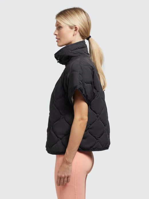 Die überschnittenen Schultern und die offenen Seiten mit Druckknöpfen verleihen der khujo Weste ERY einen besonderen Look. Zudem setzen der hoch schließende Stehkragen mit elastischem Kordelzug und eine Logo Bordüre bei dieser hüftlangen Steppweste modische Akzente und eine innenliegende Reißverschlusstasche bietet Stauraum für Kleinigkeiten.