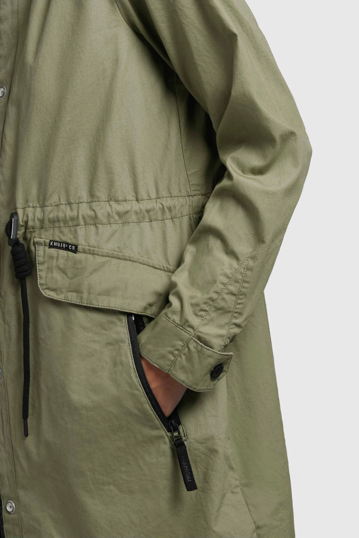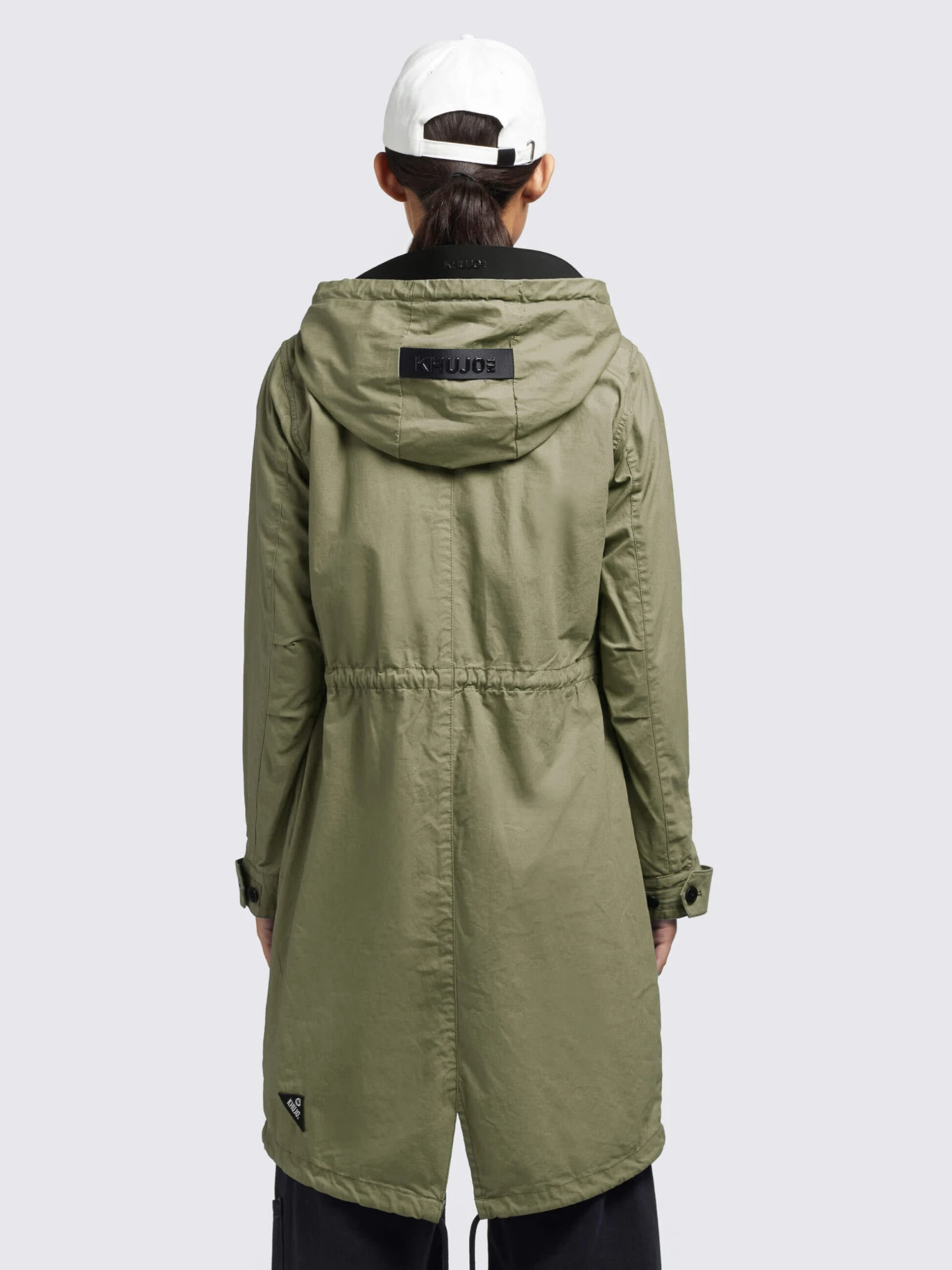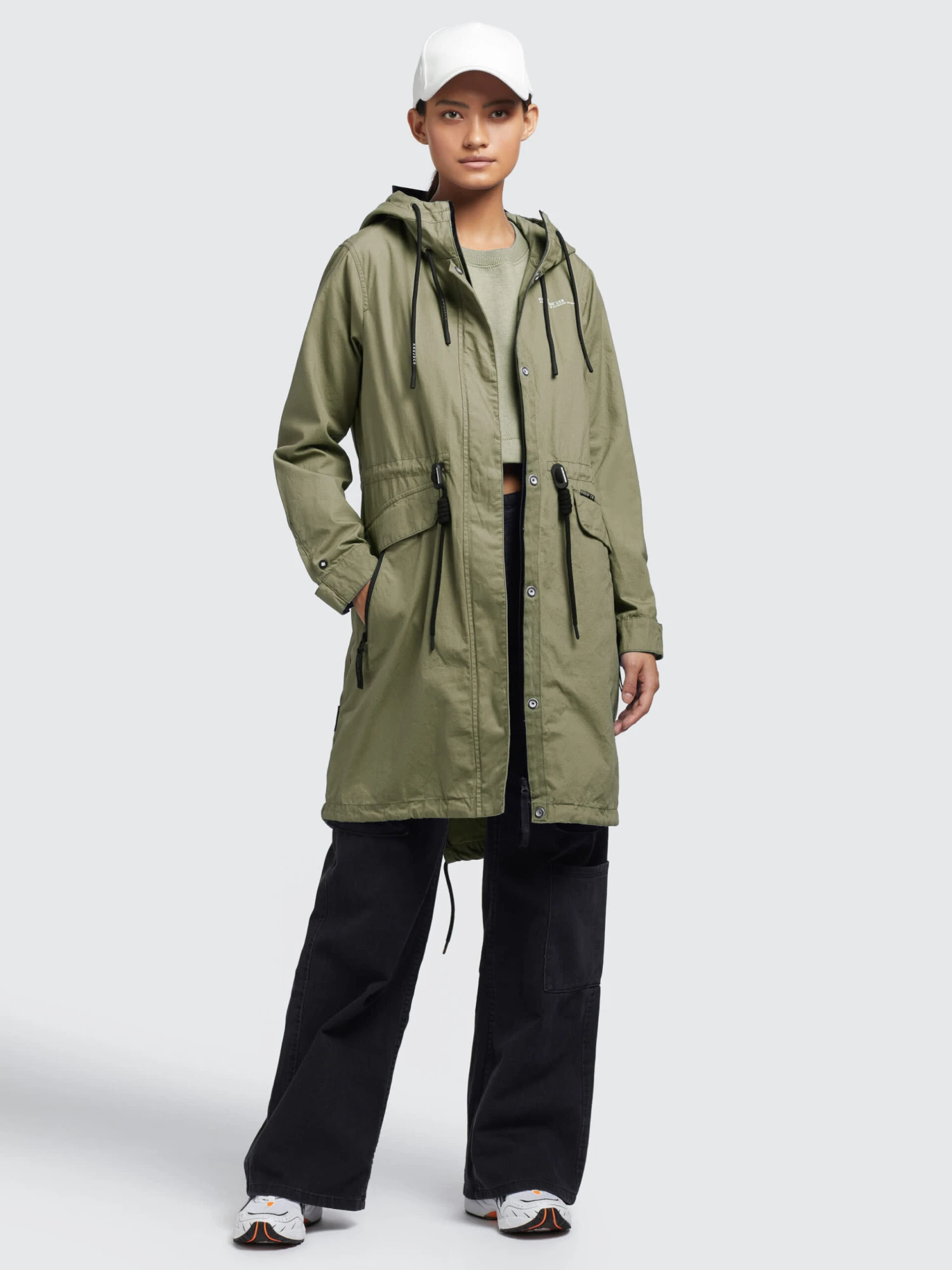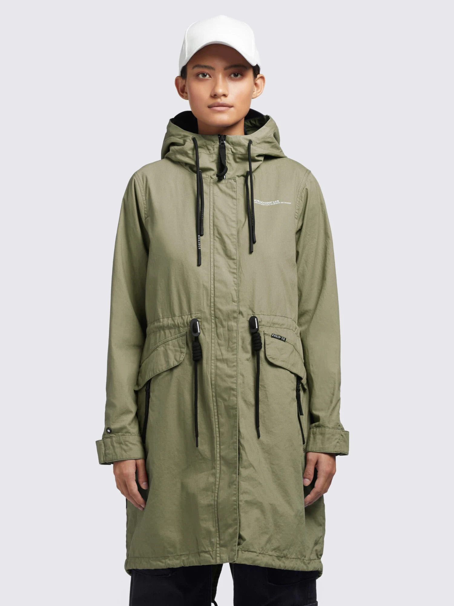 In den Pattentaschen mit Druckknopfverschluss und den Reißverschlusstaschen lassen sich bei dem khujo Mantel NANDA4 jede Menge Dinge für unterwegs verstauen. Aus reiner Baumwolle gefertigt und mit angesagtem Military-Look wird dieser leichte Sommerparka zum absoluten Must-have. Eine Kombination aus Zwei-Wege-Reißverschluss und Druckknopfleiste, einer hoch schließenden Kapuze sowie Kordelzügen an der Kapuze, der Taille und dem Saum komplettieren das Design dieses Kurzmantels.
